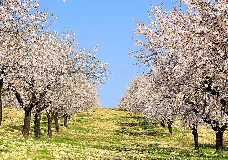 Der Mandelbaum (Prunus dulcis) ist ein sommergrüner Laubbaum oder Strauch und gehört zur Familie der Rosengewächse. Der botanische Name kommt vom lateinischen Namen für „Pflaume“, prunum. Sie sind eine der ältesten Kulturpflanzen und ursprünglich liegt ihre Herkunft vermutlich im Gebiet zwischen Iran, Afghanistan und Zentralasien. Mandeln werden als Zutat für das Brot ägyptischer Pharaonen erwähnt und bei den Griechin entstand sie aus dem Blutstropfen der Götting Kybele. Mit den Arabern und den Römern hat sie sich bis nach Nordeuropa verbreitet und mit spanischen Franziskanermönchen ist sie in Kalifornien gelandet. Im Christentum war die Mandel das Symbol für die unbefleckte Empfängnis. Bis zur Romantik wurde Christus mit einem mandelförmigen Heiligenschein dargestellt.