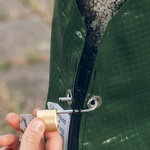 Durch die Anbringung eines Schlosses ist es nun möglich Ihren Baumsack vor Diebstahl zu schützen.